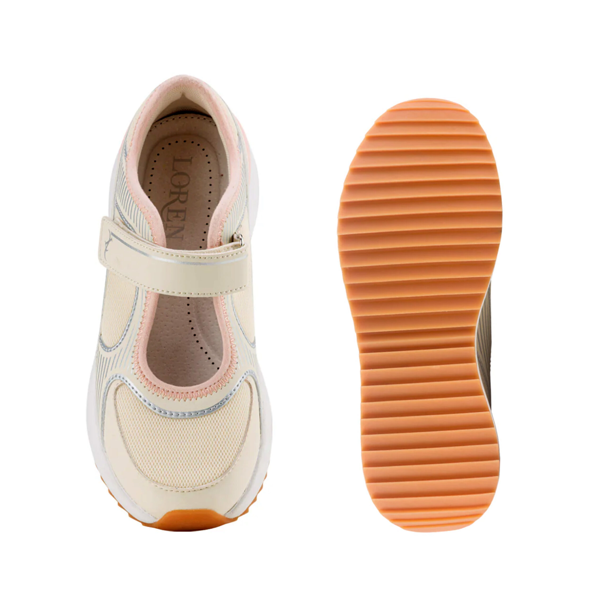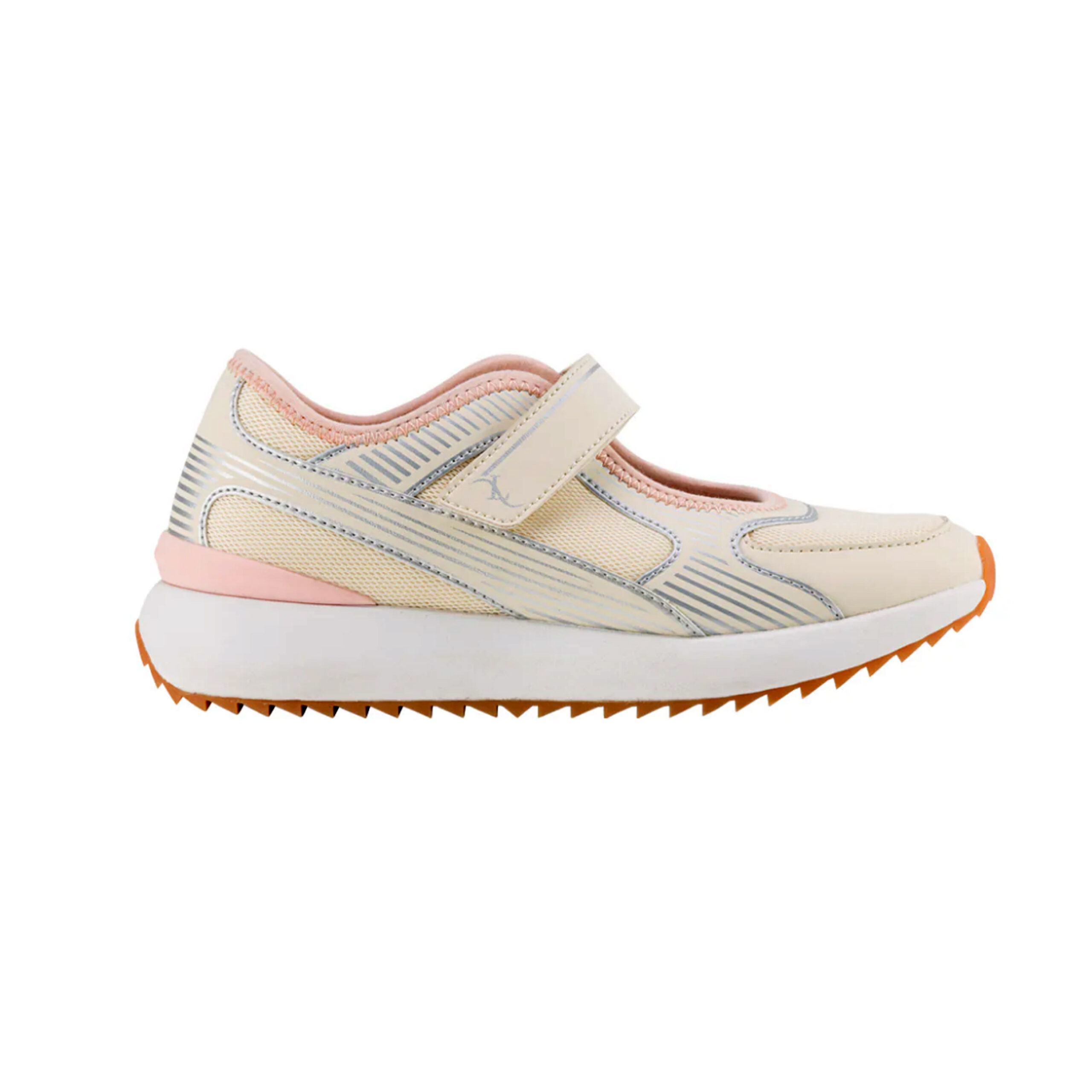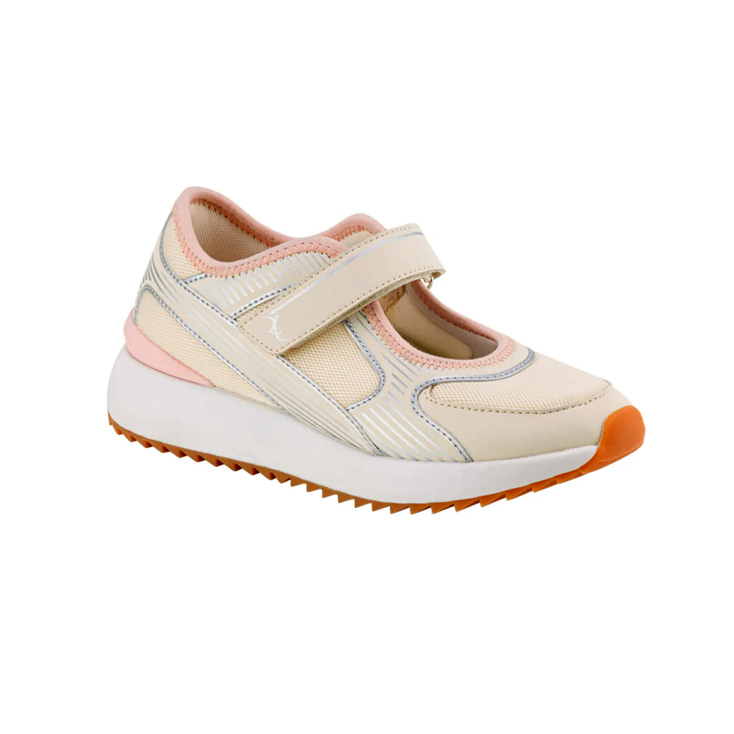 Comodissima e super leggera sneaker “Mary jane” realizzata in ecopelle e in tela nelle tonalità del burro, del rosa e con dettagli argentati. Il velcro regolabile sul collopiede renderà la calzatabilità ancora più facile. È possibile inserire il proprio plantare. Avrai la comodità di una sneaker ma la freschezza di un sandalo ideale per le tue gite e passeggiate.